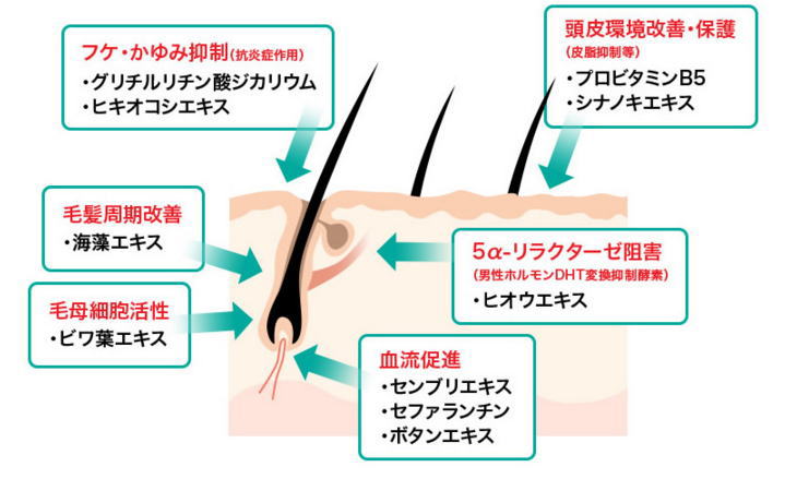 これらの成分には抗炎症作用もあることから、気になるフケやかゆみ抑制をしっかりとサポートしてくれるのも心強いですよね。